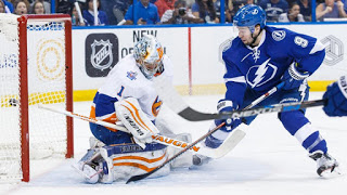 On Saturday, April 30, 2016, the New York Islanders faced off against the Tampa Bay Lightning in game 2 of round 2 in the Stanley Cup playoffs. In game 1, the Islanders won 5-3 and Tampa Bay goalie Ben Bishop was pulled from the game in the second period. Tampa Bay has won all game 2s under coach Jon Cooper after losing game 1. Lately, for the Islanders the opposite has happened with New York losing game 2 after a game 1 victory. Early in the game, Islanders Cal Clutterbuck and Nick Leddy collide and Tampa Bay goes down the other way and sloppy back checking by Matt Martin leads Tyler Johnson wide open as his backhander beats Thomas Greiss for the first goal. Ondrej Palat, who scored the first goal in game 1, gets an assist. Victor Hedman gets a helper too. Later in the period Greiss allows a weak five-hole goal against Jonathan Drouin to make it 2-0. The goal was Drouin\’s first career playoff marker. Valtteri Filppula gets the only assist. But that was not all in the 1st as a power-play shot by the Islanders\’ Thomas Hickey deflects off Nikolay Kuleman and the Islanders make it 2-1. Hickey and round 1 game 5 hero Alan Quine get helpers. In the second period, with Tampa Bay on the powerplay, a shot by Hedman goes off the Islanders\’ Calvin de Haan\’s skate and caroms in 3-1 Tampa Bay. The other two goal scores, Johnson and Drouin, got assists on the play. The Islanders were terrible offensively the entire game going from outshooting Tampa Bay 14-5 to being outshot 28-18. Hedman\’s goal was the only in the period as the Lightning went into the locker room up 3-1. With just over 2 minutes left Johnson shot from his own zone goes in an empty net and Tampa Bay ices it 4-1. That was the final score of the game as the Lightning tie up the series at 1. The refs were not afraid of calling penalties as there was 18 minor penalties in the game. Game 3 will be in Barclays Center, Brooklyn on Tuesday, May 3.