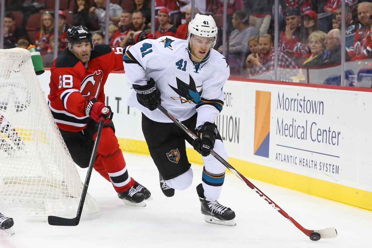 Mueller was drafted 18th overall in 2013, but has never played in the NHL full-time. Due to many AHL visits, Mueller played in just four games in 2016-17, scoring two points (a goal and an assist). He\’s just 22, and has played in 54 career NHL games, scoring six points (two goals and four assists), all for the Sharks. Also, the Sharks were expected to lose him to the Vegas Golden Knights in the expansion draft. Getting picks for him is good.